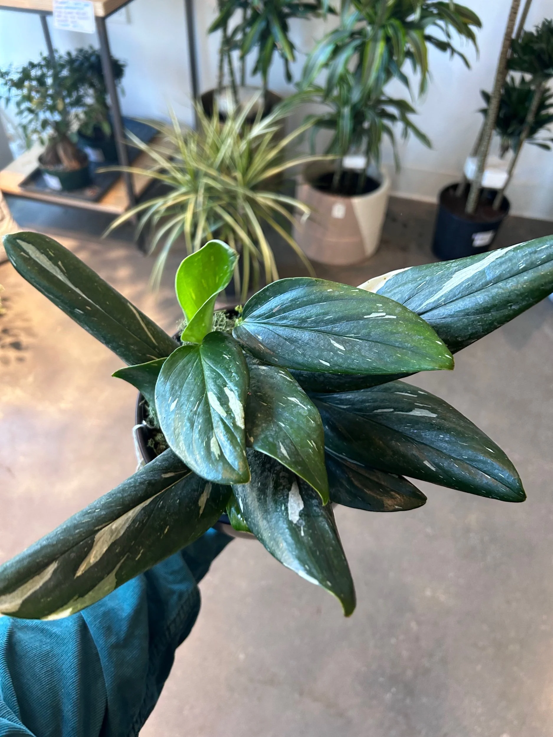 Monstera ‘Stadleyana Albo’ in 6” black ceramic pot.