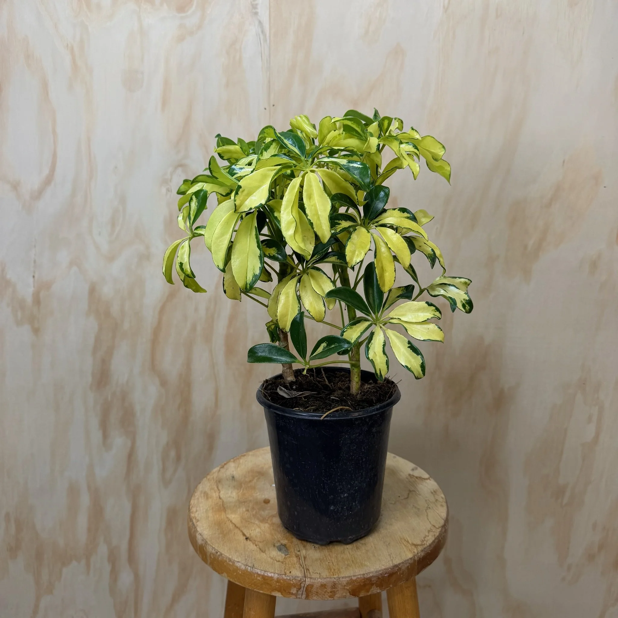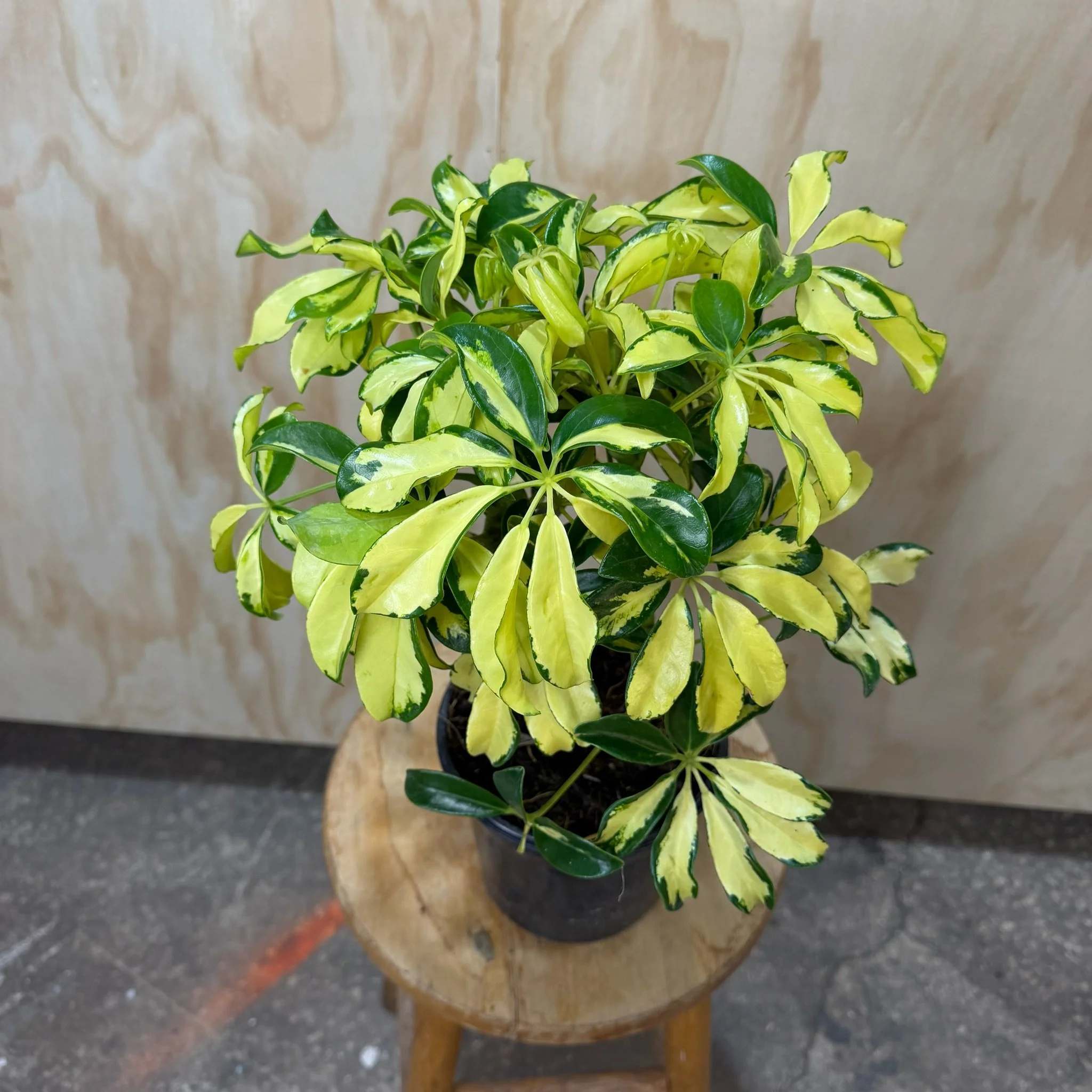 6” grow pot. Dense foliage on these variegated schefflera arboricolas.