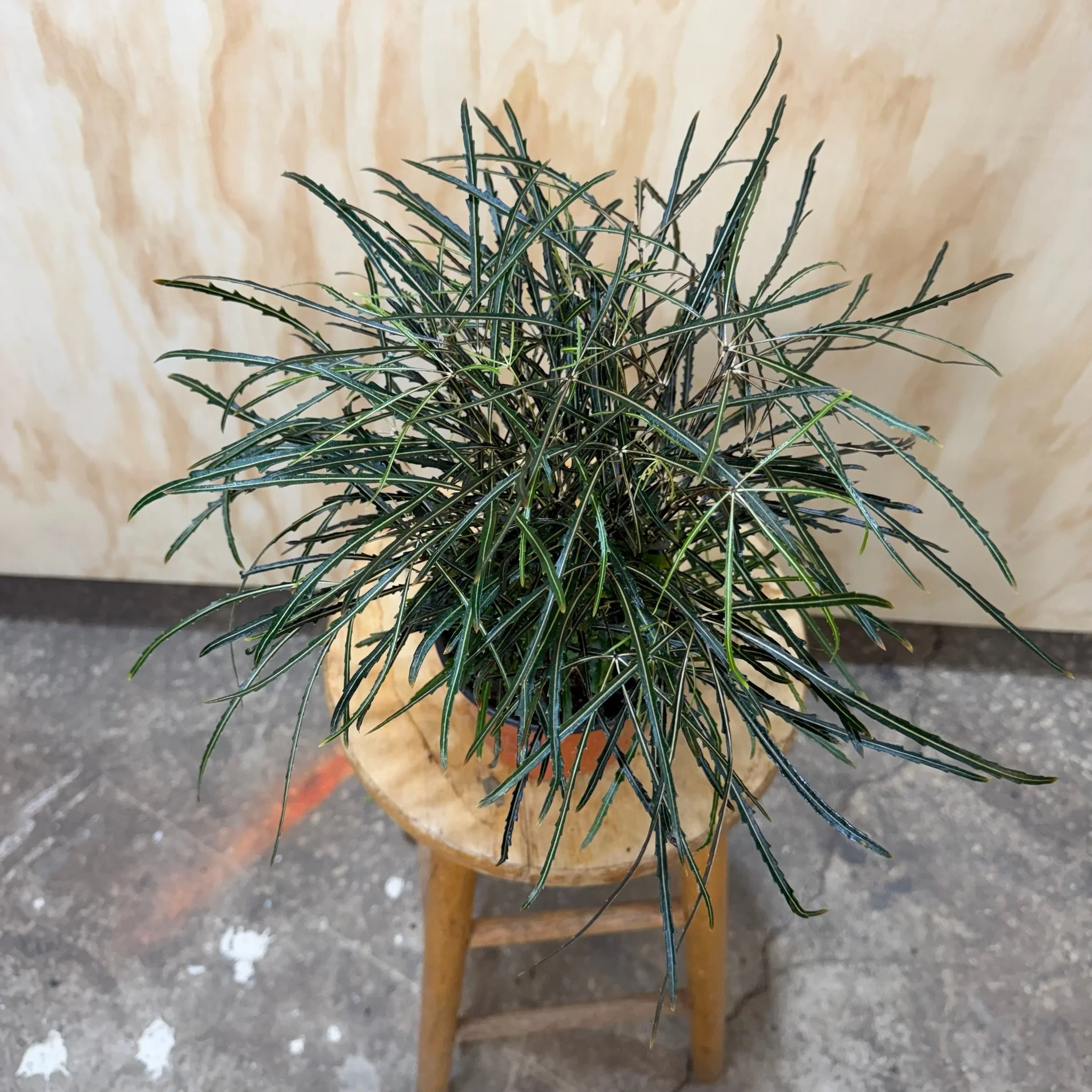 6” grow pot. Also known as the False Aralia, these plants have thick stems and dense, slender foliage.